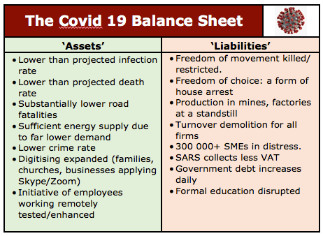 Halfway into a five-week lockdown it is appropriate to compile a kind of “balance sheet”. When the lockdown was announced, Pres Ramaphosa made it clear that protecting lives against Covid 19 was paramount: a position he reiterated when prolonging the lockdown.